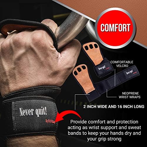 ✭ COMFORT ✭ The 2 inch wide and 16 inch long neoprene wrist wraps provide comfort and protection acting as wrist support and sweat bands to keep your hands dry and your grip strong. The straps on our exercise gloves close with a comfortable Velcro, so there are no plastic buckle to dig into your skin