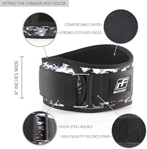 RitFit Low Profile Weight Lifting Belt 6”Inches Black/Camouflage – For WeightLifting, Gym, Clean, and Fitness – Firm & Comfortable Lumbar Support with Back Injury Protection Life time Guarantee !!!